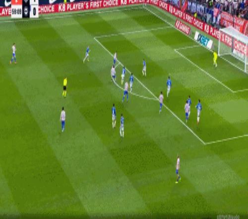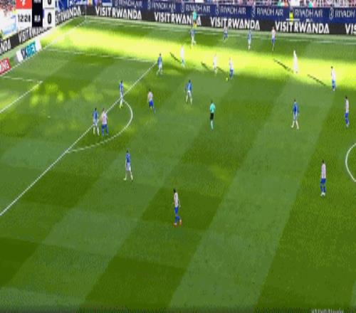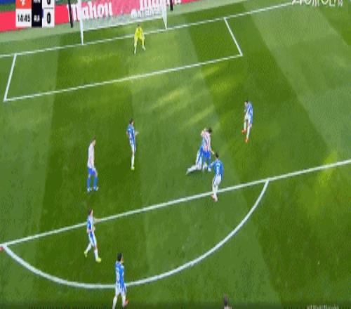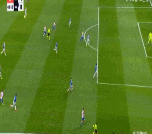 第16分鐘,阿爾瓦雷斯分球小西蒙尼右路勁射,門將將球撲出