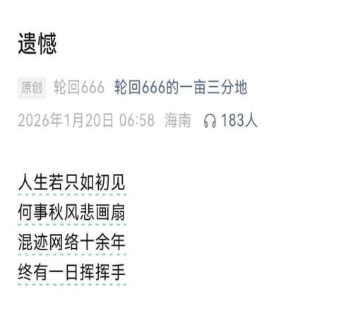 在平臺用戶之外,此次封禁的賬號擁有人也有表態。“輪回666”擁有人在今日于公眾號“輪回666的一畝三分地”發布了名為“遺憾”的文章表示,“混進網絡十余年,終有一日揮揮手”。