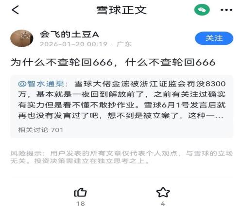 事實上,在“金浤”賬戶擁有人金永榮被監管處罰的事件發酵后,雪球平臺上就有用戶要求封禁其他“大V”的聲音,其中就包括此次被雪球封禁的“輪回666”。